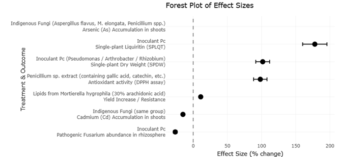This systematic review and meta-analysis synthesizes current evidence across ecological, agronomic, nutritional, and biotechnological domains. By integrating findings from studies on soil microbiomes, mycorrhizal associations, endophytes, functional foods, enzyme production, biofortification, and waste valorization, we aim to clarify how fungi and their metabolites can support more resilient food systems. Rather than viewing fungi solely as decomposers or fermentation agents, this work frames them as multidimensional biological assets capable of contributing simultaneously to sustainability, nutrition, and human health.
