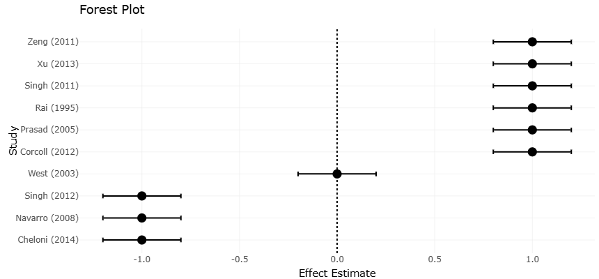 Finally, these analyses highlight the broader implications for environmental and public health interventions. The forest plots demonstrate that structured exposure to biodiverse environments consistently produces measurable benefits, while funnel plot assessments suggest that the findings are not substantially influenced by selective reporting bias. For microbial ecology and ecotoxicology, the observed heterogeneity and minor asymmetry in funnel plots indicate the need for larger, standardized studies to refine effect estimates and reduce potential publication bias. Overall, the combination of forest and funnel plot interpretation validates the conclusions of the meta-analysis and emphasizes the importance of multi-stressor evaluation in both environmental and human health research.