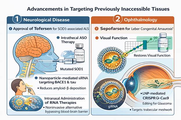 Alternative platforms, including extracellular vesicles (exosomes), polymeric nanoparticles (PNPs), and cell-penetrating peptides (CPPs), are under active investigation (Du et al., 2025; Gu et al., 2026; Setia et al., 2026). Exosomes, in particular, offer inherent biocompatibility and the capacity to traverse biological barriers such as the blood–brain barrier. Concurrently, artificial intelligence and machine learning are increasingly employed to predict biodistribution profiles and optimize lipid compositions, enabling data-driven design of next-generation delivery systems (Dalabehera et al., 2025; Navid Talemi et al., 2026).